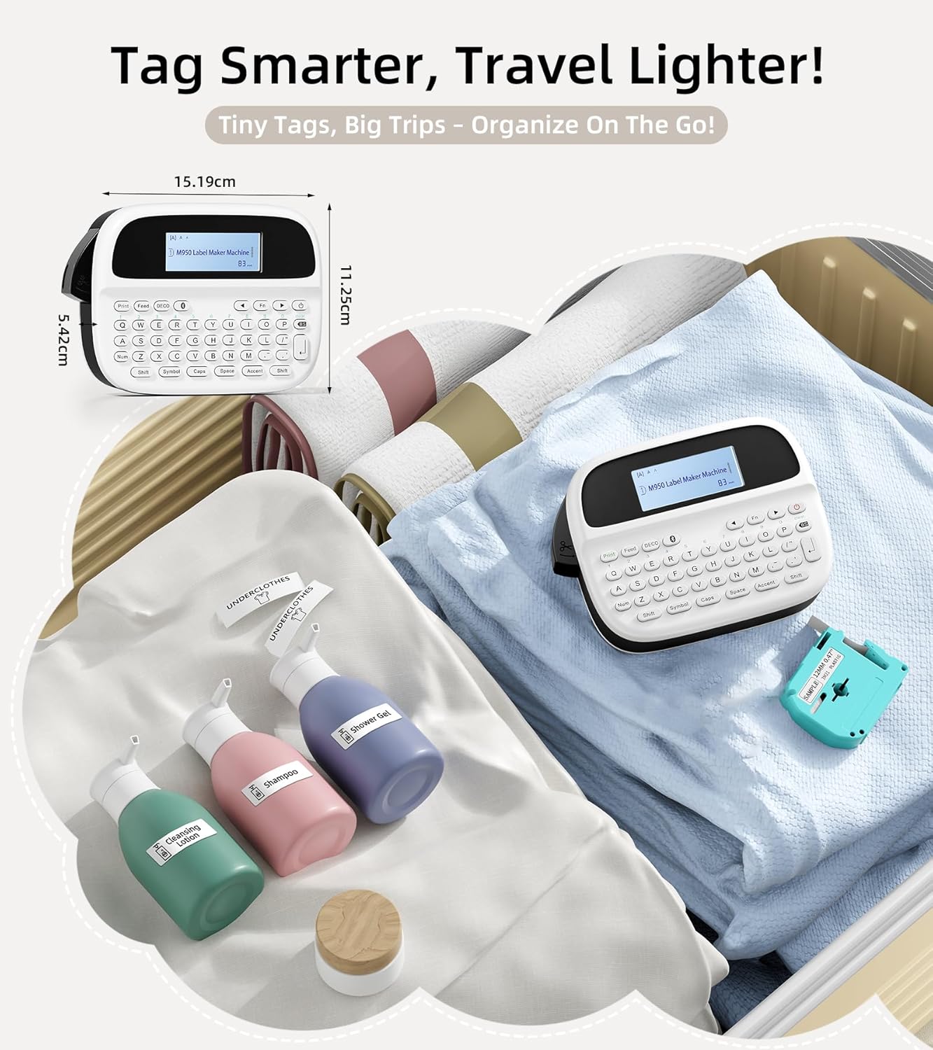 Label Maker Machine with Tapes, Label Maker Waterproof-Labels, Rechargeable Bluetooth Labeler, Portable Labeling Machine with Backlit LCD, M950 Handheld Label Printer for Office Home Use